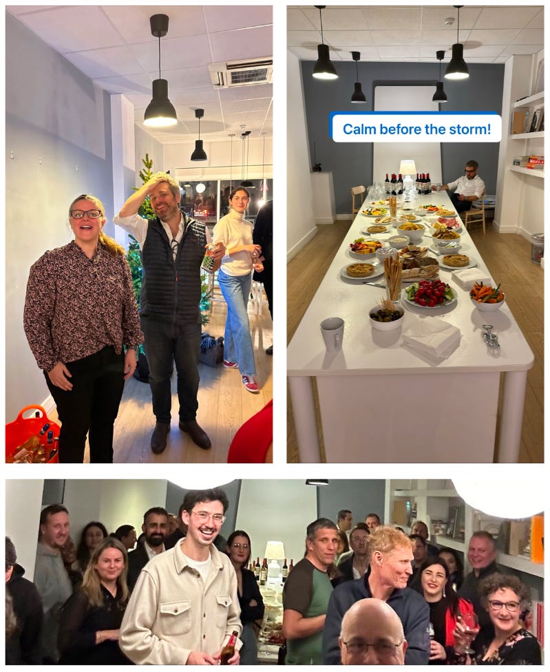 Tomorrow it’s 12 years since the first meal with 9others, above. At the 9others Winter Party, below, we were able to thank the community for helping community so much since that first meal. Plus it was particularly good to see Toni and Gerard at the party (can you spot them above as well as below?!).