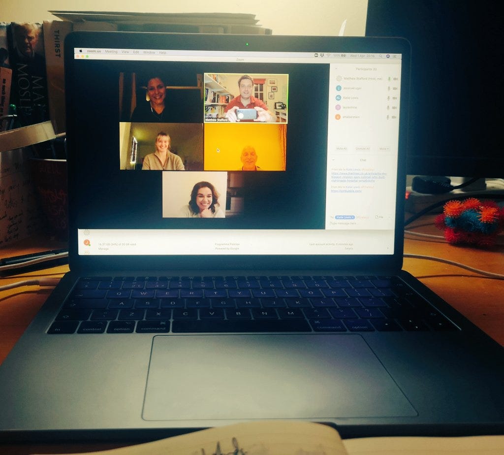 Now we’re going to do those again. The online 9others will be like the meals with 9others — each person will share a challenge and help the others — but these sessions are limited to ‘5 others’ and all done within one hour, starting at 8am (UK time) on the last Friday of each month. The cost is £15.00.
